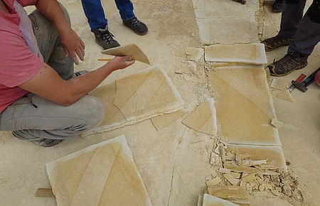 Von November bis ins Frühjahr muss von der Fossiliensuche abgesehen werden, da die Platten bei Frost zu schnell brechen und das Gelände zur Begehung nicht geeignet ist.