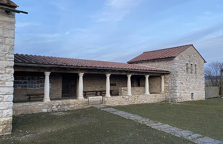 A hypocaust underfloor heating system, a massive smoothly plastered masonry, a beautifully shaped apse in the representative room of the villa and grilled windows with glasses are some of the elements that still testify to the civilization introduced by the Romans. Through a portico with columns in Tuscan style, you reach the eastern forepart of the main building; underneath it, there is a remarkably well preserved cellar. The existence both of the adjacent farm buildings and the bath is supported by documentary evidence, but their excavation has not yet been undertaken.