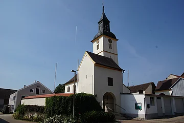Um die barocke Kirche, deren Chorturm im Untergeschoss noch romanisch ist, legt sich der Mauerring der Friedhofsbefestigung mit zweigeschossigem Torturm. Zum Obergeschoss führt innen eine steinerne Freitreppe.