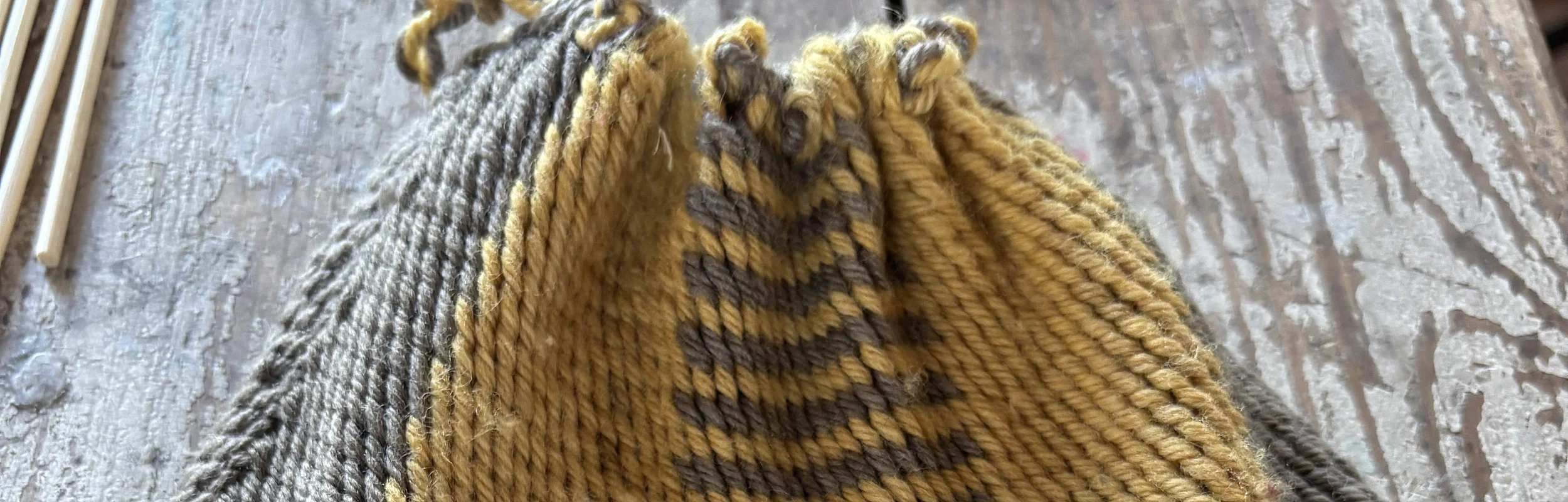 In einem Kurs erlernen wir die Grundtechniken des Sprang und erstellen einen kleinen Beutel oder ein Haarnetz.