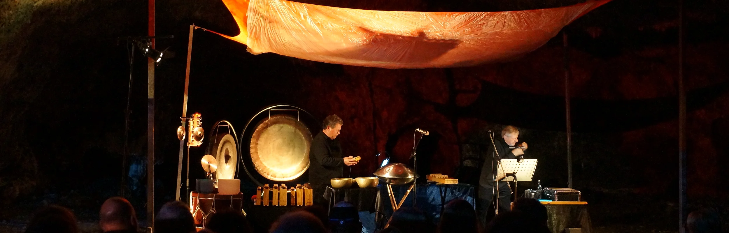 In der “Sphärischen Klangreise” entführen die beiden Musiker das Publikum in faszinierende Klangwelten mit zauberhaften und zeitlosen Melodien. Die Musiker lassen sich dabei von der archaischen Atmosphäre der Höhle inspirieren. Zu hören sind u.a. Gongs, Klangschalen, Handpan, Sansula, Heidschnucke-Bordunhorn, Double-Ocarina, Pocket-Clarinet, Roto Sound, WuWu, Chimes, tibetische Glocken, Alfaja, Saxophon, Flöten aus Indien und Peru.
